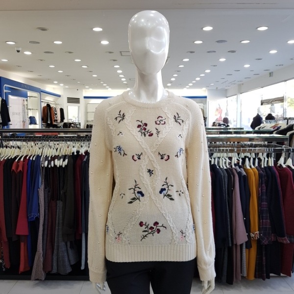 앞판 꽃자수 디테일 소매 동그라미 포인트 스웨터-JA7W1-WSL230-120