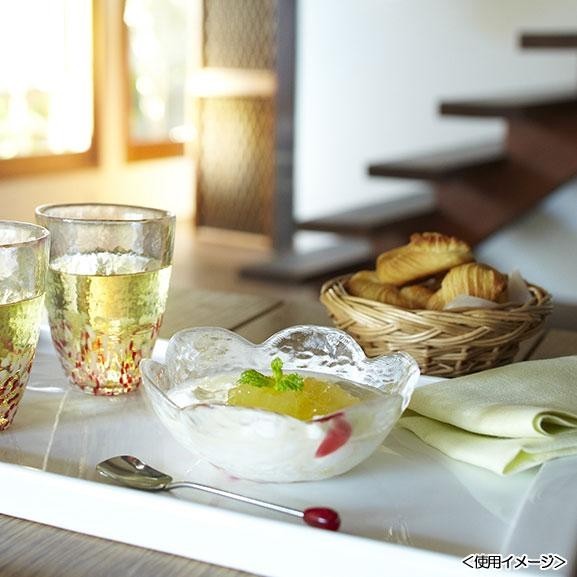 fk094igrjs青森を代表とする果実「りんご」りんごは幸せの象徴とも言われ、親しまれているモチーフです可愛いりんごモチーフの小鉢で食卓を彩りましょう♪サイズ最大13.7cm、高4.8cm個装サイズ:40×29×6cm重量個装重量:1200g素材・材質ソーダガラス仕様化粧箱入食洗機不可電子レンジ不可セット内容小鉢×5製造国日本りんごの可愛らしい形と色合いをガラスに写しとりました☆☆津軽びいどろは、青森県伝統工芸品に指定されています☆■ガラス食器についての注意■※使いはじめは中性洗剤などで洗って下さいその際、ガラスを傷つけるおそれのある研磨剤入りのスポンジ、金属たわし、クレンザーなどを使用しますと破損の原因になります使用しないでください(ガラス食器に使用できるクレンザーもあります品質表示などでお確かめの上ご使用ください)※グラスの内側を洗う際は充分ご注意ください内側から力を入れてひねり洗いしますと、破損し思わぬケガをすることがあります柄付きのスポンジのご使用をお勧めします※ナイフやフォークやスプーンなどをグラスの中に入れたり、グラスをナイフやフォークやスプーンの