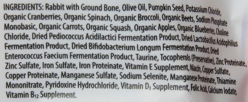 • 90% rabbit and bone along with only organic fruits and vegetables