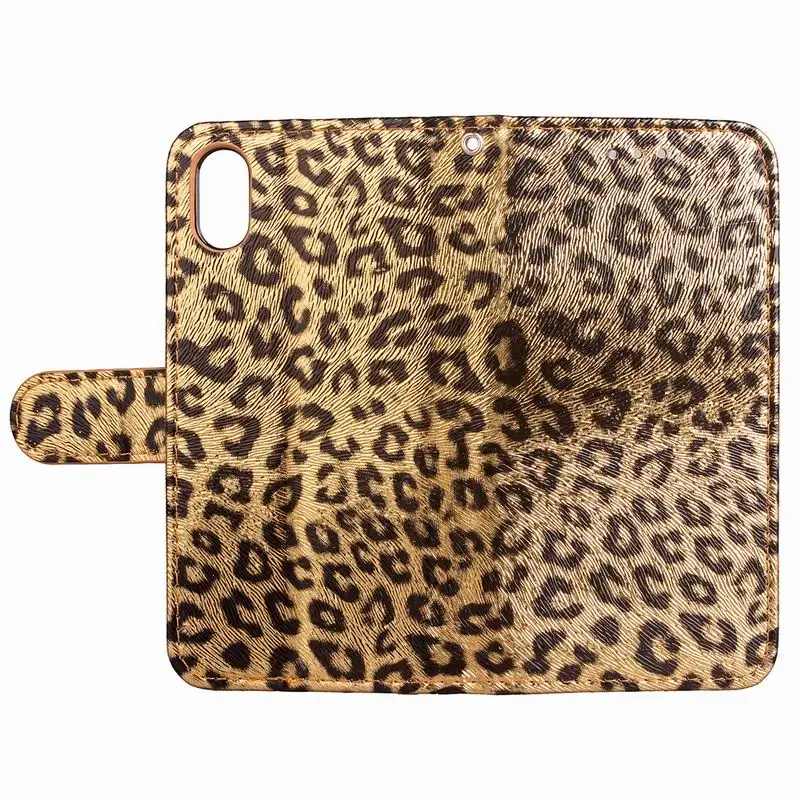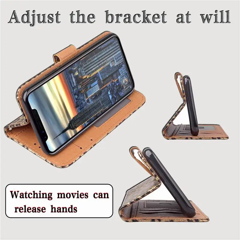 Feature One:Sexy Leopard Pattern Skin +Safe Buckle+Card Slots+Kickstand Phone Capa