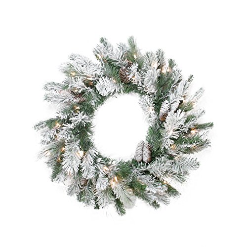NORTHLIGHT M84201 30" Pre-Lit Flocked Victoria Pine Artificial Christmas Wreath-Clear Lights