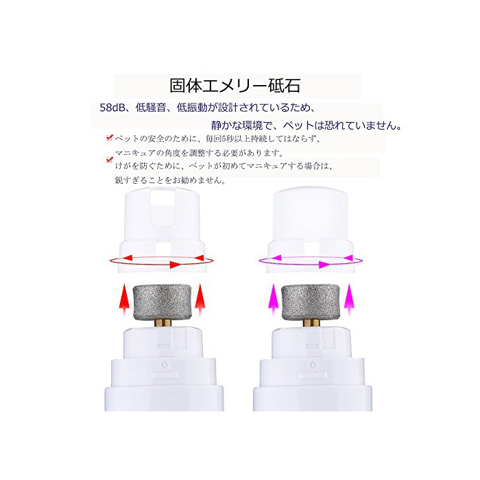 원본상품명:Bengoo ペット用 電動爪トリマ? 爪切り 安全 ?音なし USB充電式 電動爪?ぎ機 犬/猫/ウサギ/鳥通用 58dB ネイルヤスリ ホワイト