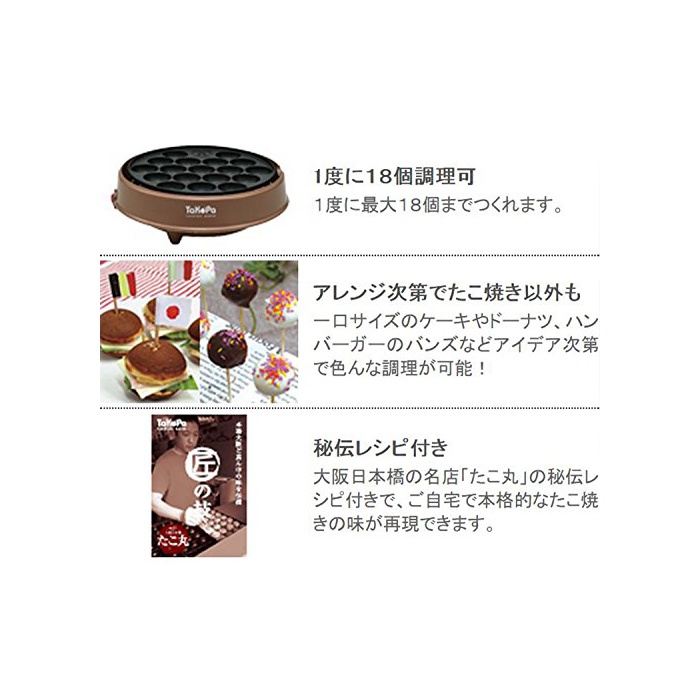 원본상품명: APIX たこ?き器 【TaKoPa】 18穴 平面プレ?トレシピ付き ブラウン ATM-018-BR