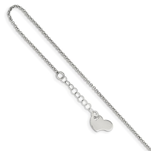 ICECARATS DESIGNER JEWELRY 925 STERLING SILVER HEART 1 INCH ADJUSTABLE CHAIN PLUS SIZE EXTENDER ANKLET FOR WOMEN ANKLE BEACH CHAIN BRACELET