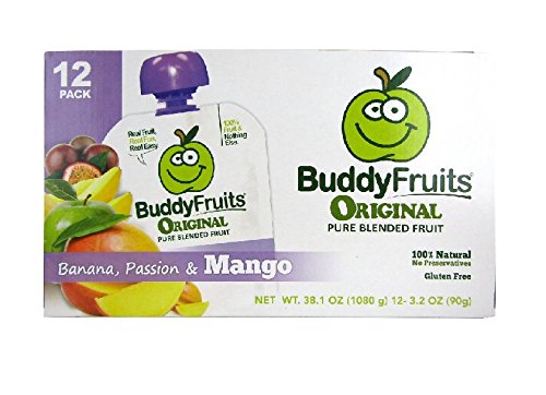 BUDDY FRUITS MANGO PASSION AND BANANA FRUIT SNACK SQUEEZE POUCHES, 12 COUNT