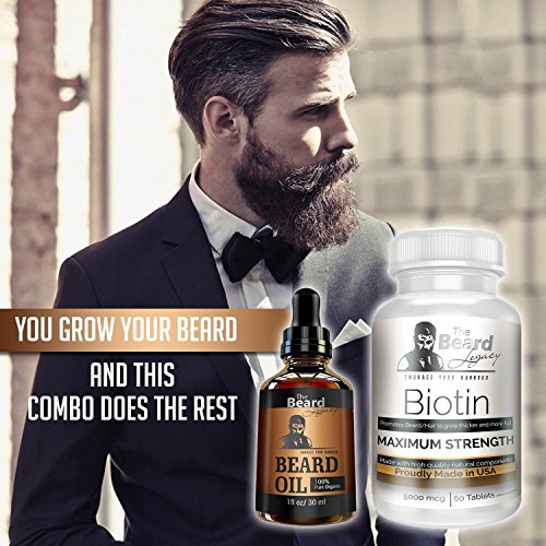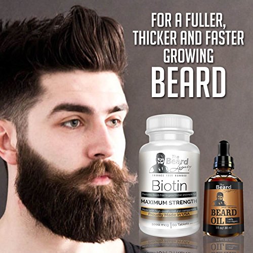 BEARD GROWTH KIT - Biotin #1 Beard Supplement/Vitamin. For Thicker and Fuller Facial Hair + Beard Oil Unscented Made of Argan/Jojoba Oil. Men's...