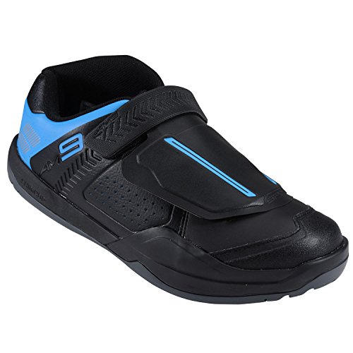 Studio : Shimano Publisher : Shimano Binding : Misc. Product Description All-Mountain Shoes for Aggressive Downhill, Enduro and Trail Riding. Conquer gravity and be ready to battle the toughest descents with confidence and control. Pedal Channel provides more stable platform between shoe and pedal when not clipped in. Traction tread on toe heel enhances grip. EVA Foam construction reduces shoe weight down to under 800g in size 40. 0