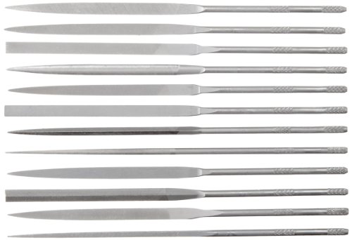 Nicholson 12 Piece Needle File Set with Handles, Swiss Pattern, Double Cut, #4 Coarseness, 5-1/2" Length
