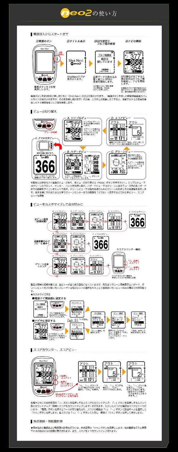 New information and functions necessary for golfers such as green view, score management, etc. are newly added while inheriting the concept · usability of the first generation "Shot Navi Poket", super long seller "Pocket NEO".