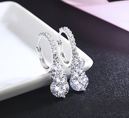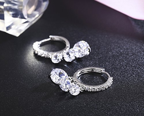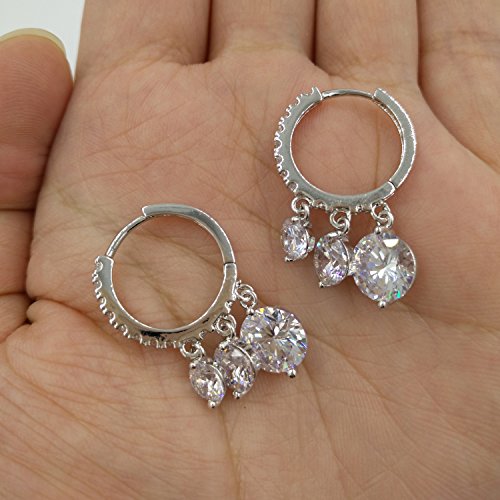 Platinum Plated drop earrings featuring 3 Graduated sparkling Cubic Zirconia beauty marks (3 Graduated CZs of 5mm, 6mm and 8mm), punctuated with 1.5mm small gemstones