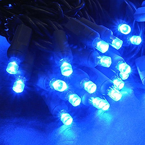 FEITA LED Mini Christmas String Light Set, 39'Long ,100 Lights with Wide Angle Bulb (5MM),Lighting Party Patio String Lights, Blue, Green Wire, 34 Feet