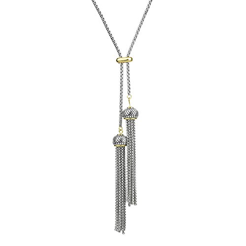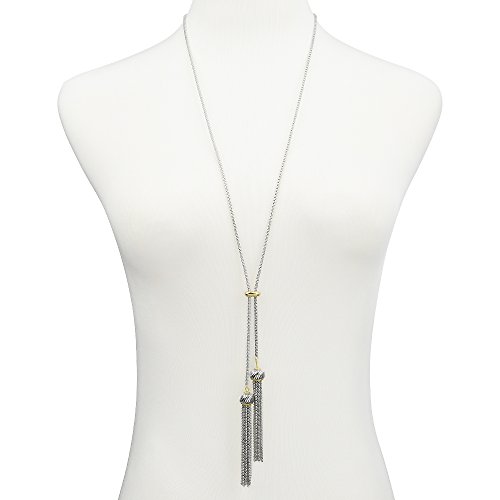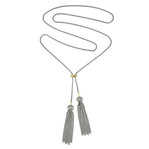 Featuring two box chain tassels, assembled in a Y lariat necklace in two tone.