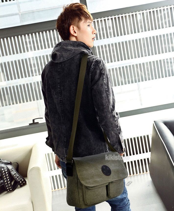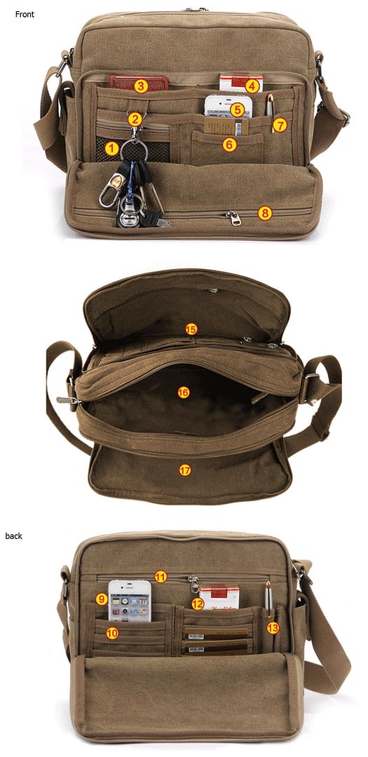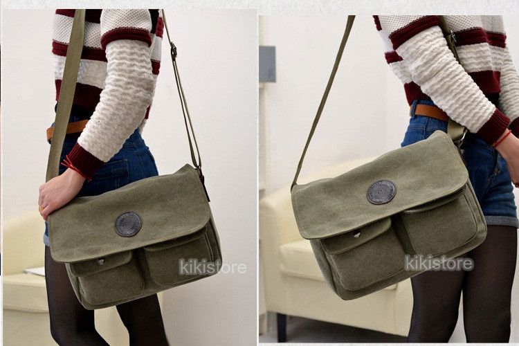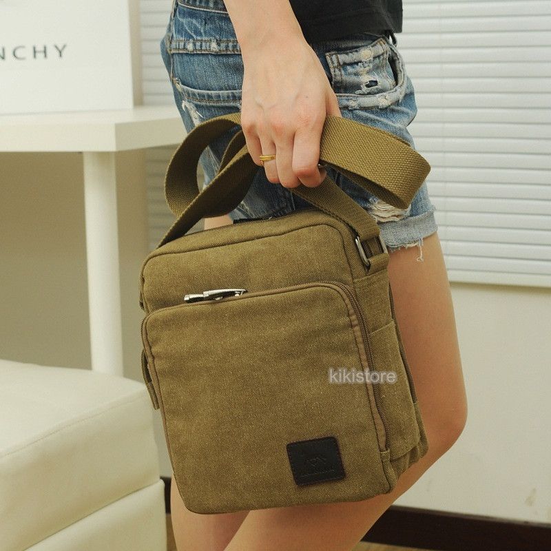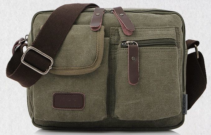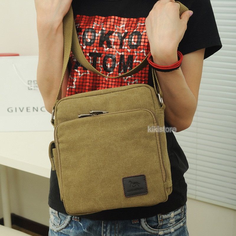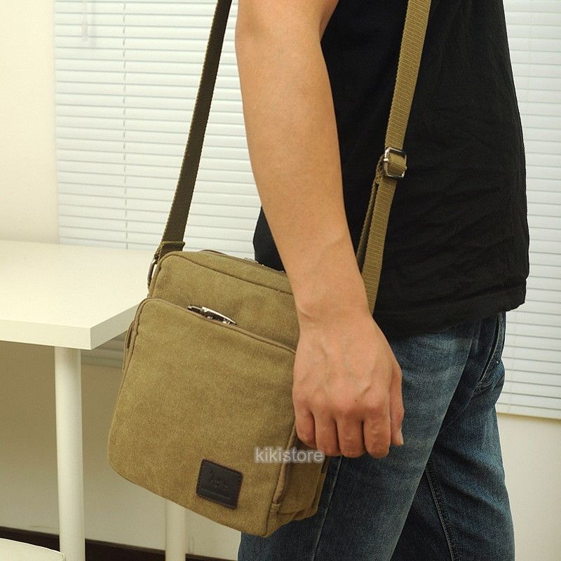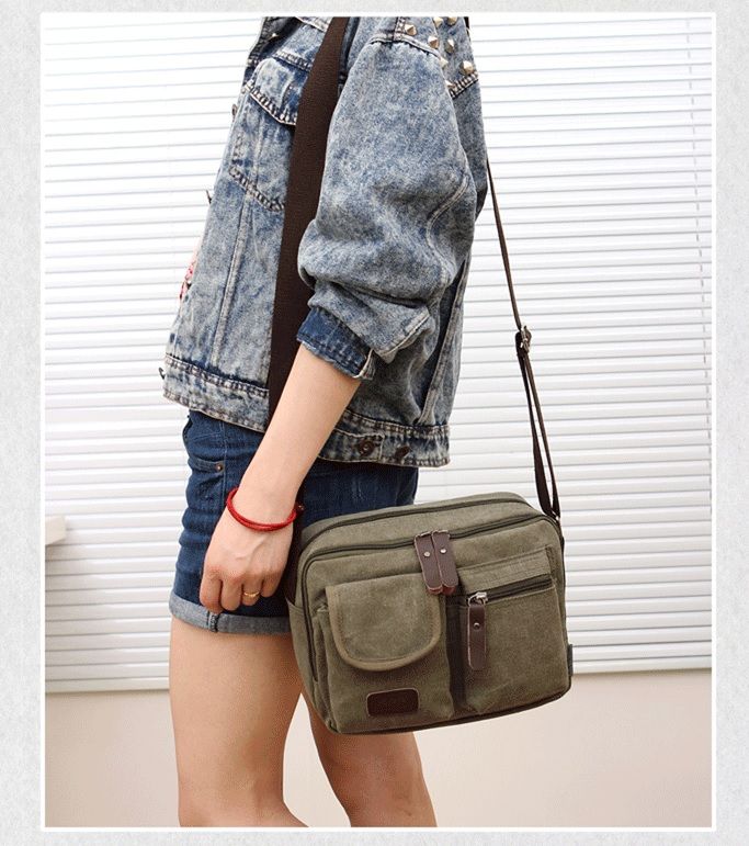 I. Square Multi Compartment Canvas Messenger Shoulder Bag