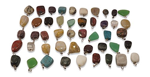 RE Style 12 Stuck Edelstein Anhanger Ketten-Anhanger Heilsteine Trommelsteine mit silberfarbene Ose ca.15-25mm mit u.a. Rosenquarz, African Jade, Tigerauge, Amethyst, Lapis-Lazuli, Jaspis,