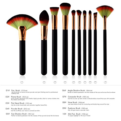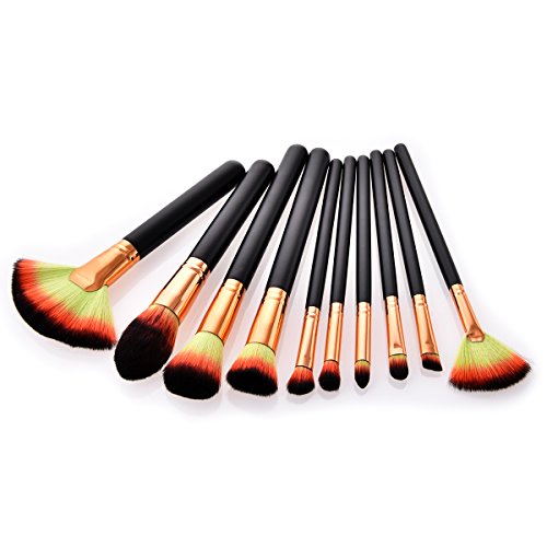 FIDDY898 Proffesional Makup Brush Set Blush Powder Cream Foundation Brush Kabuki Comestic Tool Kit-10 pcs gold