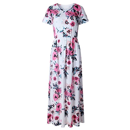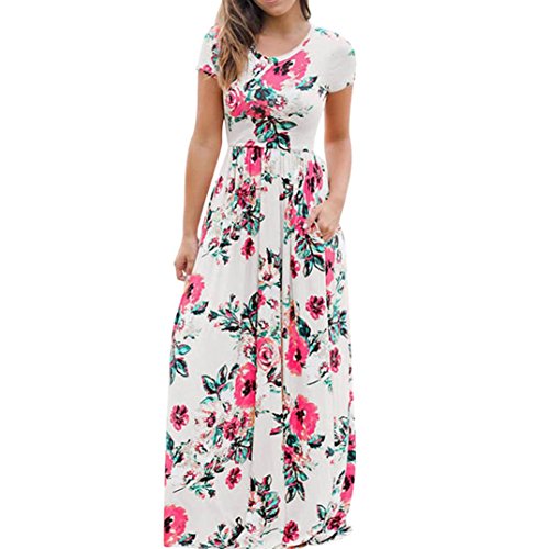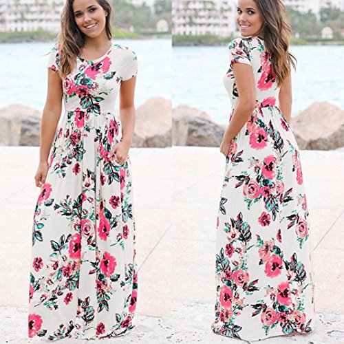 (Alimao)/Accessories/Gloves/DIRECT FROM USA/Alimao Women Summer Bohemian Short Sleeve Floral Printed Long Maxi Dress