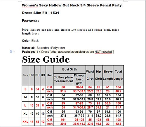 - Title : MISSMAY Women's Sexy Hollow Out Neck 3/4 Sleeve Pencil Party Dress Slim Fit Size S Black