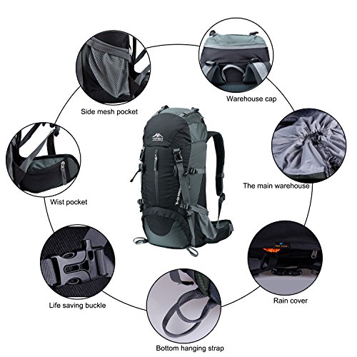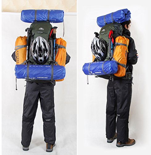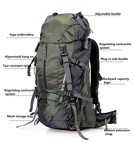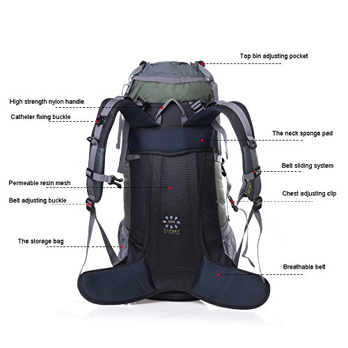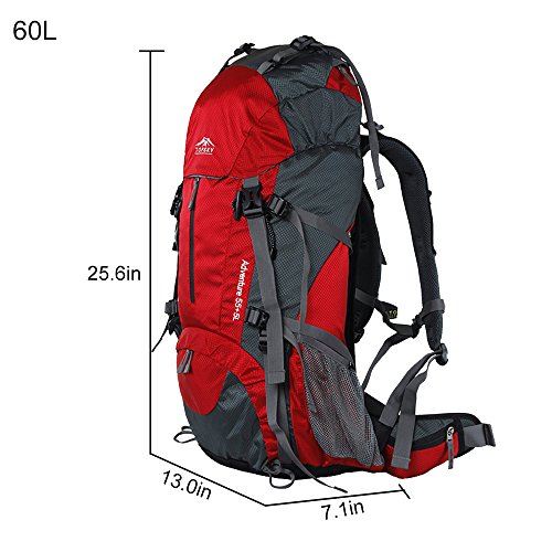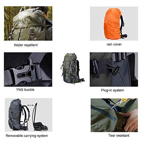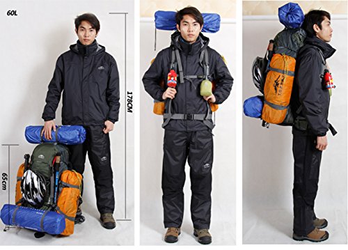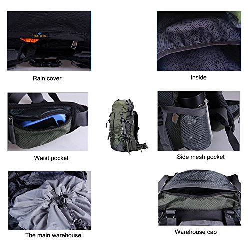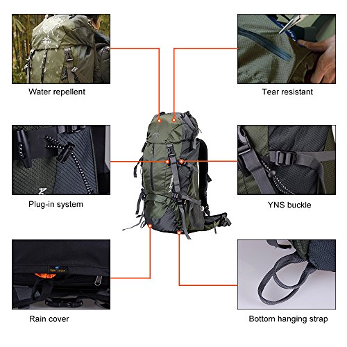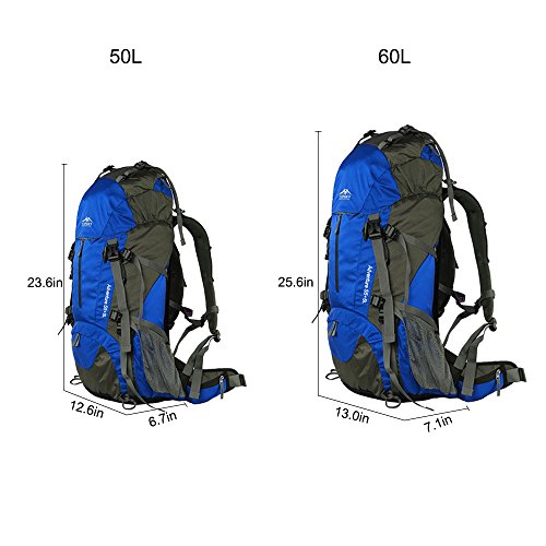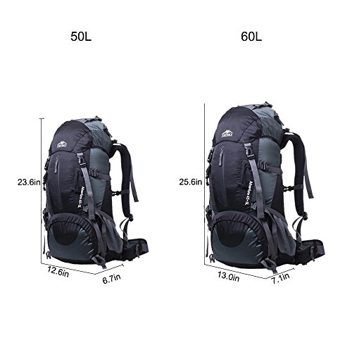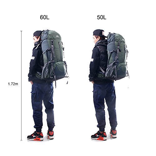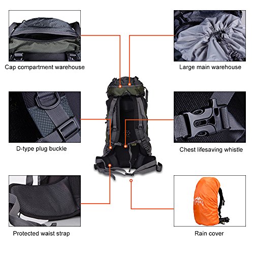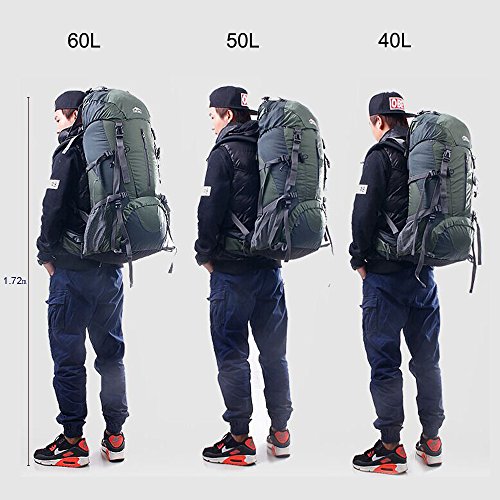 Topsky Product Instructions: Name: T30621 50l 60l internal frame backpack Material:High quality nylon and oxford fabric Colors: Black,Blue,Red,Orange,Green,Dark Green Capacity:50L, 1.5kg, Size(HxLxW):23.6*12.6*6.8 inches/60*32*17 cm. Capacity:60L, 1.7kg, Size(HxLxW):25.6*13.0*7.1 inches/65*33*18 cm. Features 1. High quality nylon and oxford fabric, water repellent, tear resistant, wear resistant, breathable and moistureproof, smooth and comfortable. 2. Main compartment, secondary compartment, sleeping bag compartment with divider, bladder compartment with hydration access, hip-belt pocket, top lid pockets, side zipped pouch and mesh side pockets to keep your stuff separate and organized. 3. Use the removable TCS resin mesh carrying system, breathable widened and thickened S type strap, air cushion gasket waist, SBS zipper, YNS buckle, D shape hooks, reflective strip, water outlet and catheter retaining clip, rain cover, make equipment more comfortable and professional. 4. Large capacity, powerful-plug in system and multiple elastic bands, it's roomy enough for your iPad, mobile phone, clothes,towel,hammock,walking poles, backpacking tents, sleeping bag, and other accessory. 5. Different requirements for both men and women. Perfect for hiking,travel,day-to-day use, pack beach accessories, suitcase alternative, college, camping and more, and great gift for everyone. Package: backpack*1 (with rain cover) About returns policy and our services 1. Please sending message, if you are not satisfied with our product or have ordered a wrong, we will reply you within 12 hours. 2. Please leave us your valuable feedback or product review with 5-stars, If you are satisfied with our products. 3. Please contact us first about your problem before you leave a negative feedback, and we will resolve it in a best way. 0