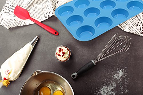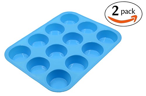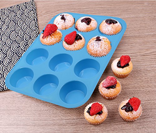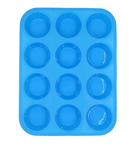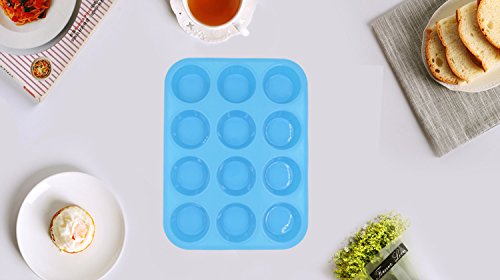 Summer Clearance - 12 Cup Silicone Muffin Pan by ULee - Non-Stick Silicone Cupcake Pan - BPA Free Silicone Baking Mold - Dishwasher Safe (2, Blue)