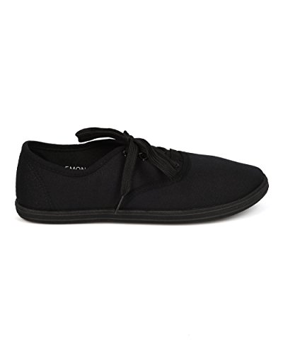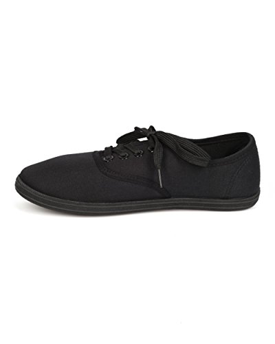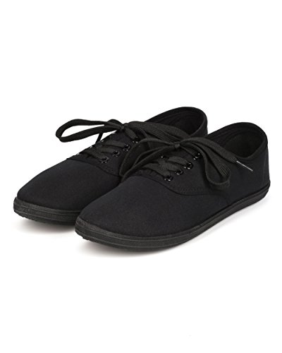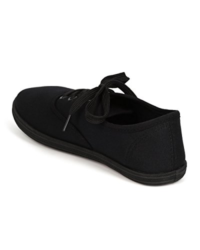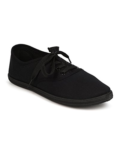 Refresh ED21 Women Canvas Round Toe Classic Lace Up Sneaker - Black