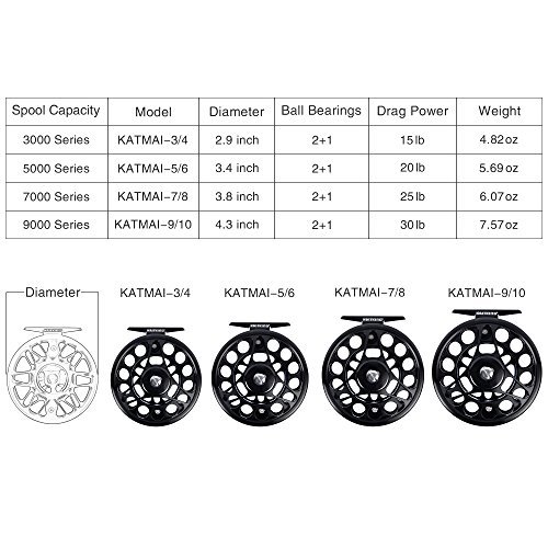 -. Feature : NEW for 2017! From surf to stream KastKing Katmai waterproof fly fishing reels are the real deal! / SALTWATER REEL - Katmai Fly Reels with 2 premium saltwater rated ball bearings and stainless steel construction are saltwater approved. / WATERPROOF - KastKing® Katmai's amazing fly reel center disk drag unit is o-ring sealed to keep out water and sand. / FOUR SIZES - Katmai fishing reels come in 4 sizes: 3/4 74 mm dia, 5/6 87 mm dia, 7/8 97 mm dia, 9/10 109 mm dia. / BEST VALUE - Easy right or left hand conversion. Available in black or gun metal. Storage bag included. Two-year warranty.