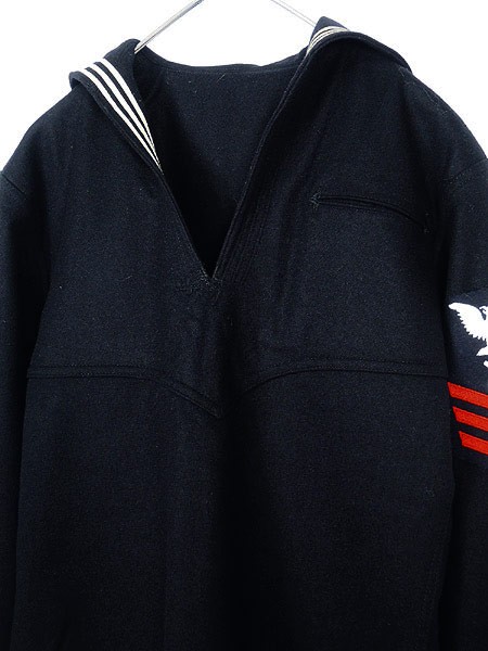 Ladies ブランドNAVAL CLOTHING DEPOT カラー黒 メール便不可 コンディション★★★ モデル- 素材ウール100% 表記サイズ36R スタッフコメントUS NAVY、ヴィンテージセーラーシャツ。プルオーバーデザイン。星刺しゅう、白ライン全体にシミあり。 実寸サイズ 着丈 62 cm 身幅 50 cm 肩幅 43.5 cm 袖丈 61 cm ※ウエスト・ヒップ以外は平置き採寸