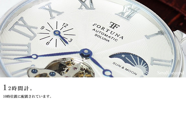 スモールセコンドと12時間計が、10時位置、12時位置にそれぞれ配置されています。