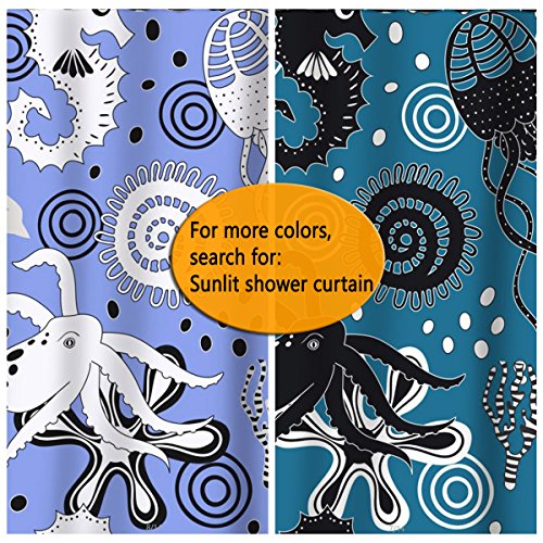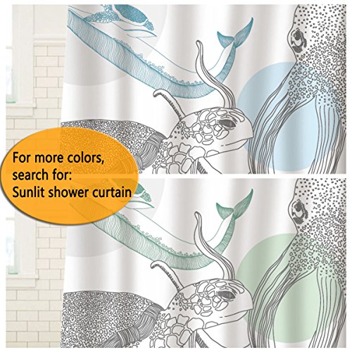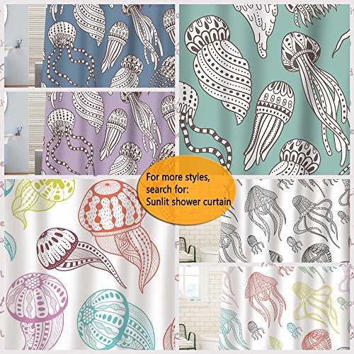 Sunlit Lilac White Jellyfish Squid Tentacles Fabric Shower Curtain, Abstract Art Sea Creative Ocean Nautical Theme with Boho Geometric Patterns, Aquatic Cartoon Marine Life Bathroom Decor