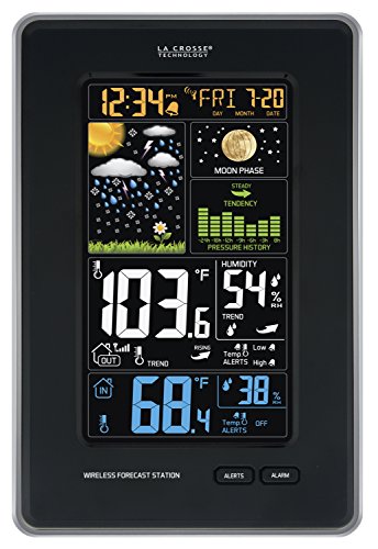 LA CROSSE TECHNOLOGY 308-1425B-INT VERTICAL WIRELESS COLOR WEATHER STATION WITH PRESSURE, BLACK