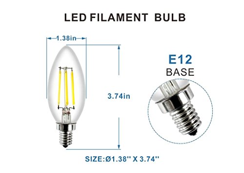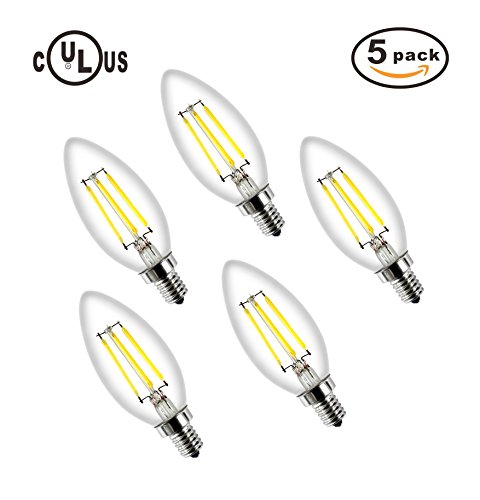 E12 LED Candelabra Bulbs Dimmable, 4W 2700K Warm White, C35 Filament Light with Candle Torpedo Shape, UL Listed,5 Pack