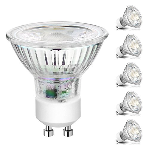 GU10 LED Bulbs, Ascher GU10 COB Light Bulbs / 5W, Equivalent 50W Halogen / 420LM / 5000K Daylight White / Non-Dimmable / LED Spotlight MR16 GU10 Base / Pack of 5