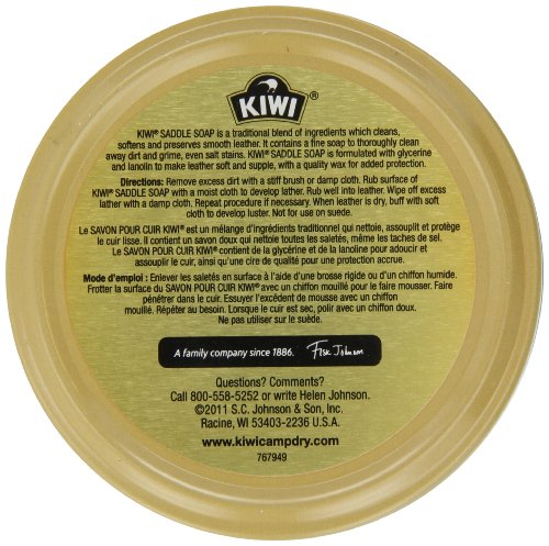 Product DescriptionKIWI Saddle Soap is a traditional blend of ingredients which cleans, softens and preserves smooth leather. It contains a fine soap to thoroughly clean away dirt and grime, even salt stains.0