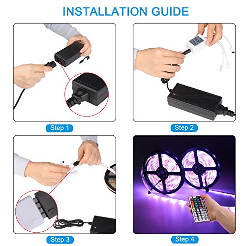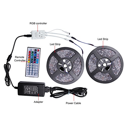 - ✅ALL IN ONE KIT- It comes with 2 reels of 5m Led strips, a 44-key remote controller, and a 12V 5A power supply.No more accessories are required