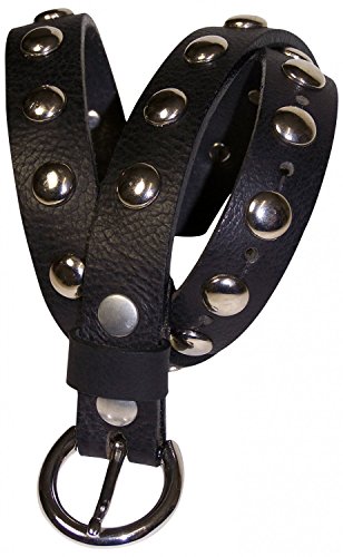 This stylish studded belt makes a serious impression with its large round studs all the way around plus a matching round buckle. The belt strap is made of robust buffalo leather that is extremely durable while also having a lovely texture. It is great for wearing with dresses, jeans and other pants.? Leather is a natural product; subtle differences in color and irregularities are possible and are what make your product one of a kind. All FRONHOFER belts and FRONHOFER dog collars are made in Germany. We specialize in belts and dog collars - you have made an excellent choice when purchasing a FRONHOFER product! - Shipping takes 3-6 days in Europe and generally not more than 8-10 days to non-European countries.
