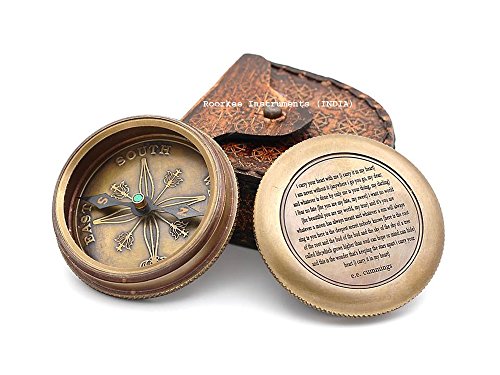 - E. E. Cummings Complete I Carry Your Heart Brass Compass with Leather Case