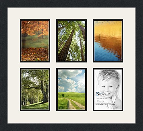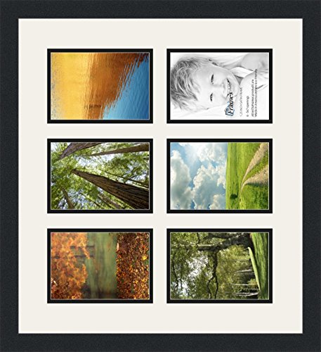 ArtToFrames Double-Multimat-2041-61/89-FRBW26079 Collage Photo Frame Double Mat with 6-5x7 Openings and Satin Black Frame, Super White, 6-5x7