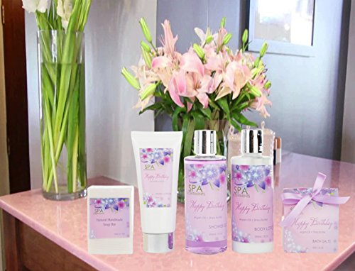 HEALTHY CHOICE: Contains ingredients that promote natural healing, such as Shea butter, Argan Oil etc. Shea butter is a superior moisturizer with vitamin A that improves a number of skin conditions such as itchy and dry skin, wrinkles and blemishes. Unlike other brands, our bath products are free of SLS & other harmful Chemicals. Birthday Basket scent is reminiscent of Birthday Cake & party goodies