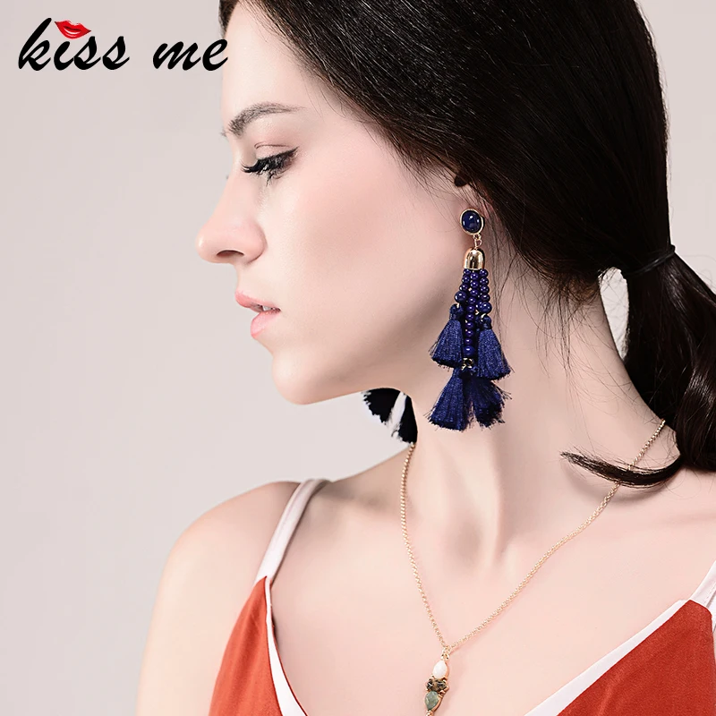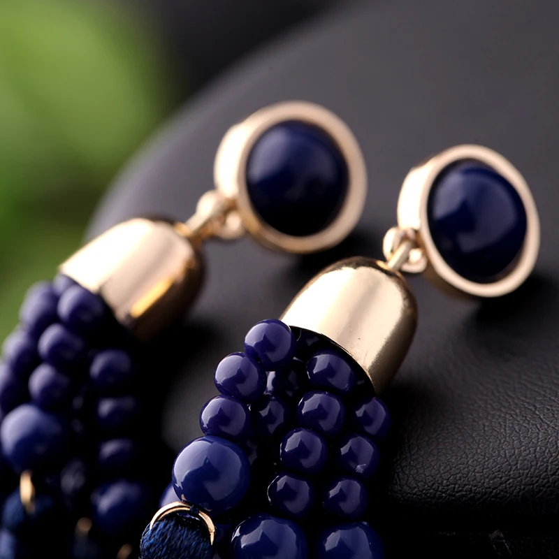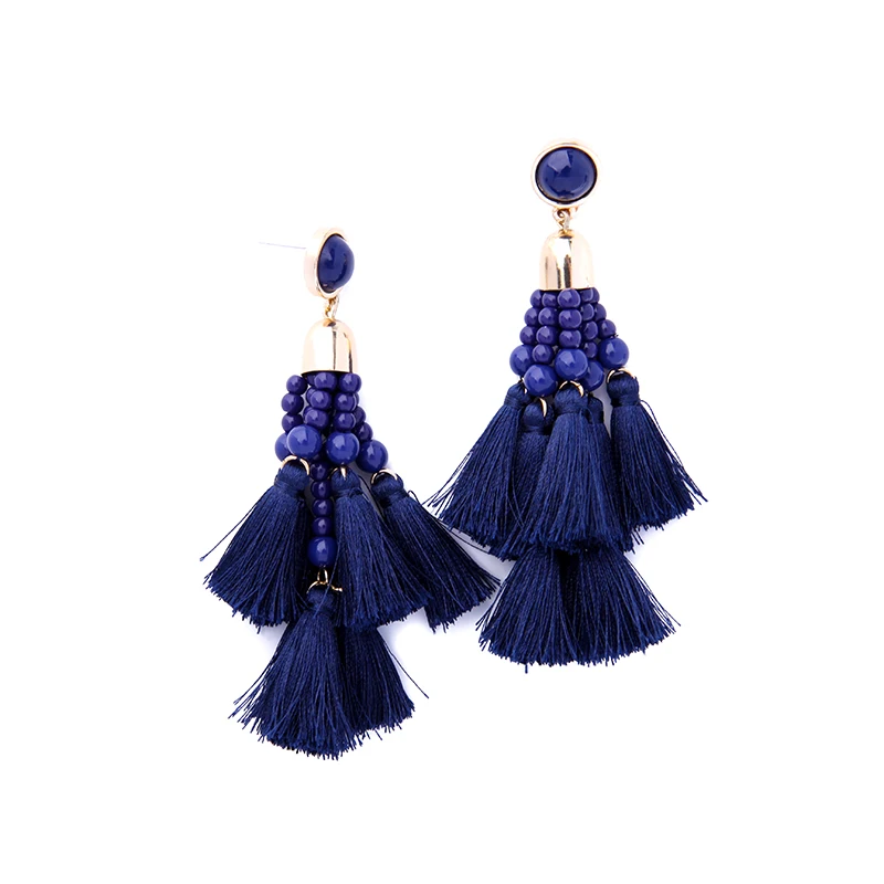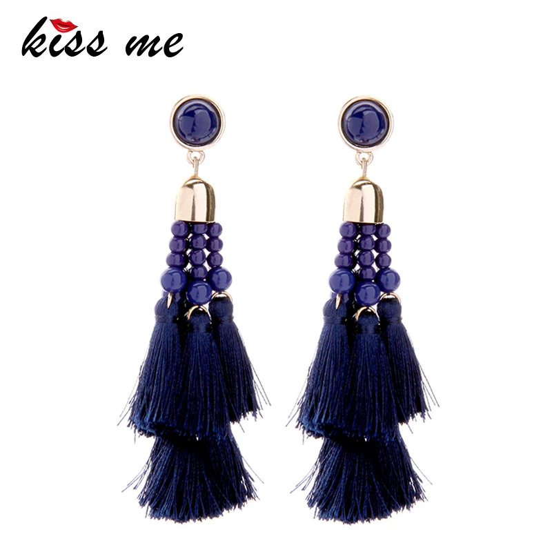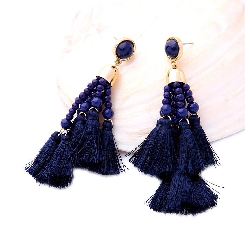 Production name ::KISS ME Ethnic Style Deep Blue Beads Tassel Long Earrings