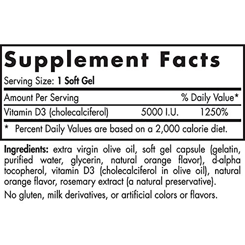5000 I.U. Vitamin D3 For Healthy Mood, Immune Function, Bone Health