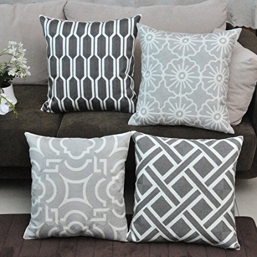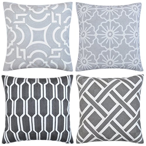 baibu 100% Cotton Decor Sofa Throw Pillow Case Embroidery Grey Cushion Cover for Bed,Chair,Sofa Set of 4