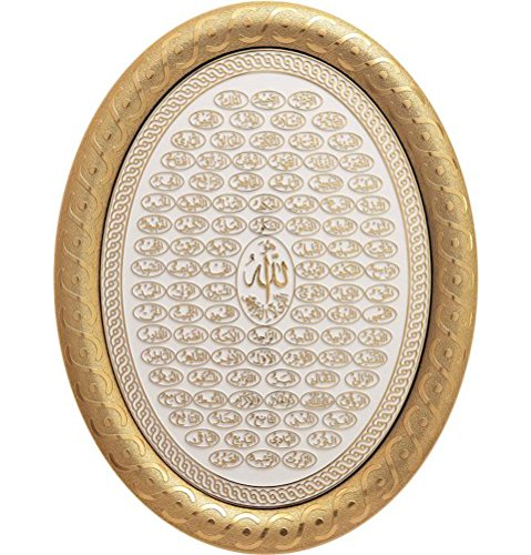 Islamic Gift Acrylic Decor Oval Plaque 7.5 x 9.5 in Gold and White 99 Names of Allah