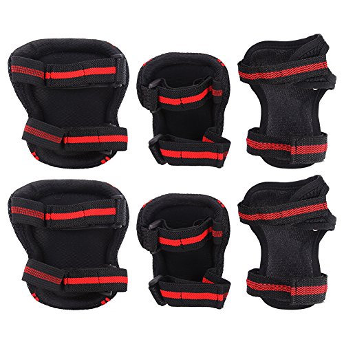 -. Feature : High hardness PVC shell, thickened soft sponge, comfortable and durable. / Velcro strap design, slip-resistant and convenient.Fine workmanship and fashion outlook. / Elbow, knee and wrist 6pcs a set, bring you all-round and perfect protection while doing sports. / The size is comparably run smaller,so I recommend that your size should be one size bigger. / Suitable for skateboard, roller blading, riding a scooter, bicycle and many other outdoor sports.