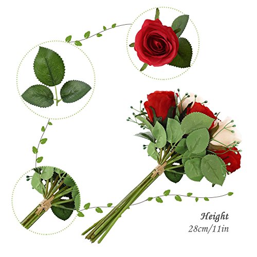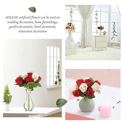 Silk Rose Bouquet 9 Heads Red SOLEDI Artificial Fake Flower Bunch Bouquet Bridal Bouquet Wedding Living Room Table Home Garden Decoration