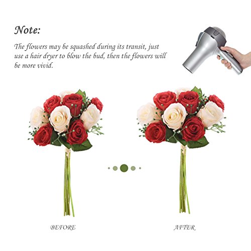 ★HIGH QUALITY MATERIAL: Made of high quality silk, designed by the best craftsman. This flower bouquet is made of real-looking flowers with bright color, non-toxic and harmless, no color fading and no flower dropping off, more durable, easy to clean.