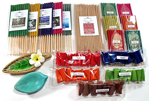 Fulllight aroma set, Thai tradition temple incense, aroma fragrance incense tube, mini size smokeless fragrance incense tube, fragrance Incense cones & 2 handmade ceramic Incense burner (FL10)