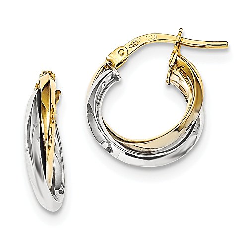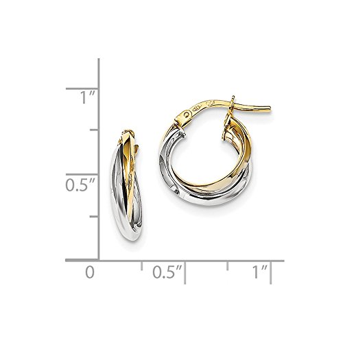 Solid 14k Gold Two Tone Polished Double Hoops (14.2mm x 16.5mm)