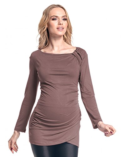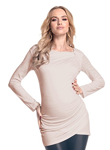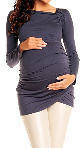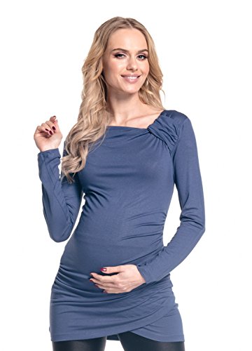 | Happy Mama. Women's Maternity Long Sleeve Stretch Jersey Drape Tunic Top. 941p |