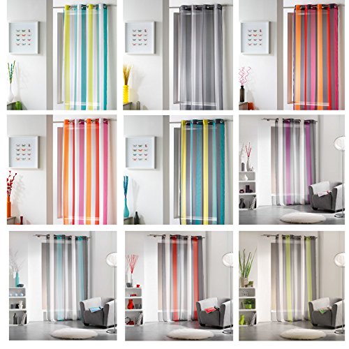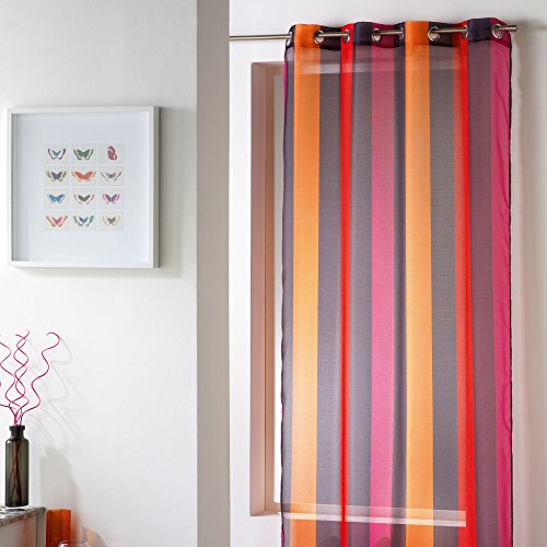 EVIDECO Striped Sheer Grommet Curtain Panel Riviera (Gray/pink/orange)
