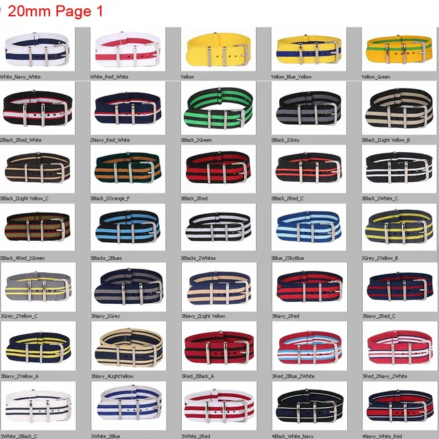 상품 내용 소재:나일론 스트랩, 스테인레스 스틸 버클 이 가격 10 개 스트랩. 당신이 대해 나에게 메시지를 남겨주세요. 밴드 폭:20 미리메터 밴드 길이:265 미리메터 걸쇠 유형:버클 봄 바:포함 색상:선택. 우리의 상점, 우리는 나토 스트랩 수십 컬러 18 미리메터, 20 미리메터, 22 미리메터, 24 미리메터. 아래 링크를 방문: