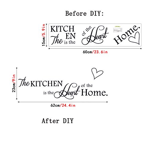 -. Title : English Letters Kitchen Heart Shape Wall Decal Home Sticker PVC Murals Vinyl Paper House Decoration Wallpaper Living Room Bedroom Kitchen Art Picture DIY for Children Teen Senior Adult Nursery Baby